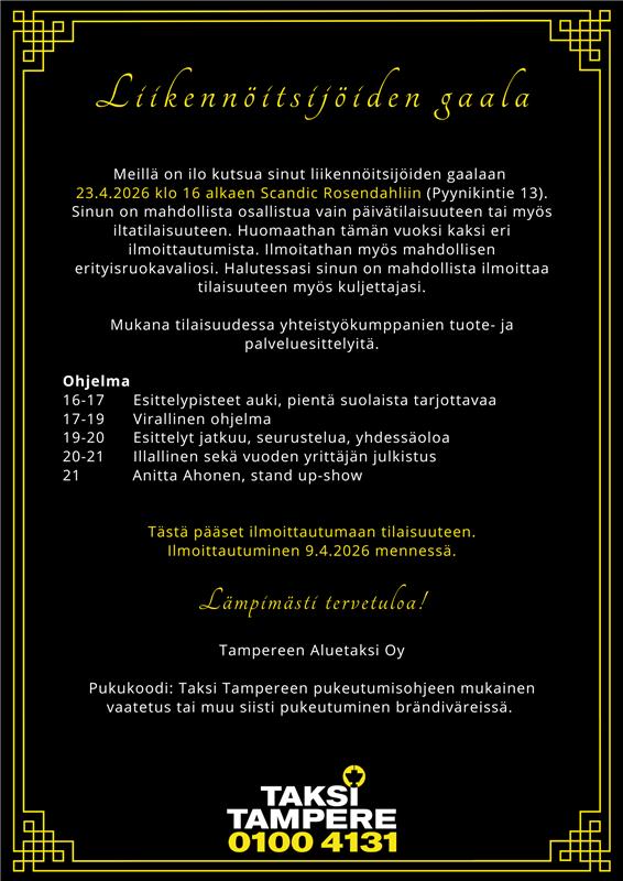 Huom! Vain Taksi Tampereen ja Aitotaksin kokonaisvälityksen liikennöitsijöille.